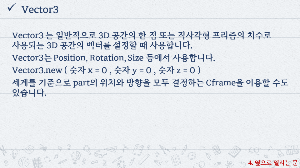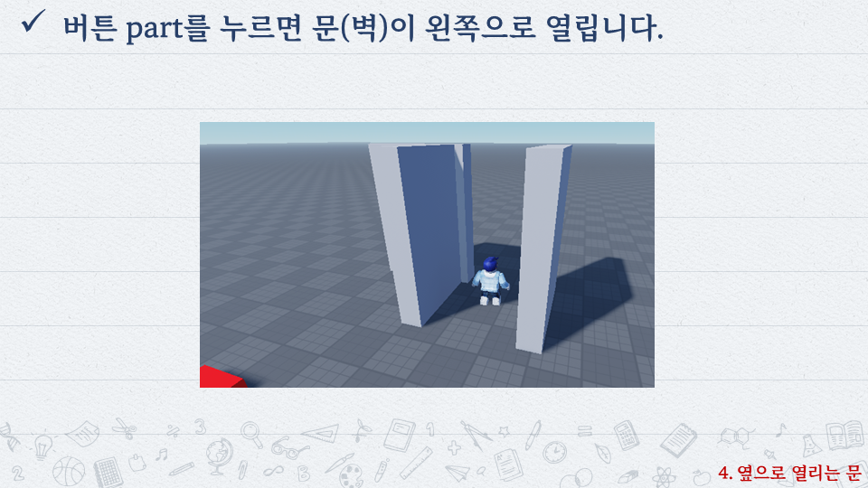 | 로블록스로 배우는 코딩 #5 - 열렸다 닫히는 문 (0) | 2022.10.06 |