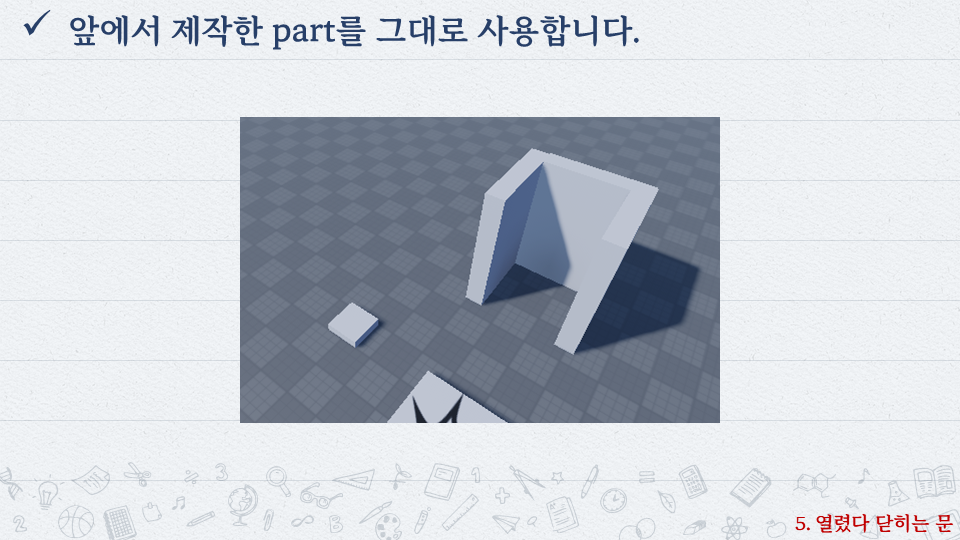 | 로블록스로 배우는 코딩 #4 - 옆으로 열리는 문 (0) | 2022.10.06 |