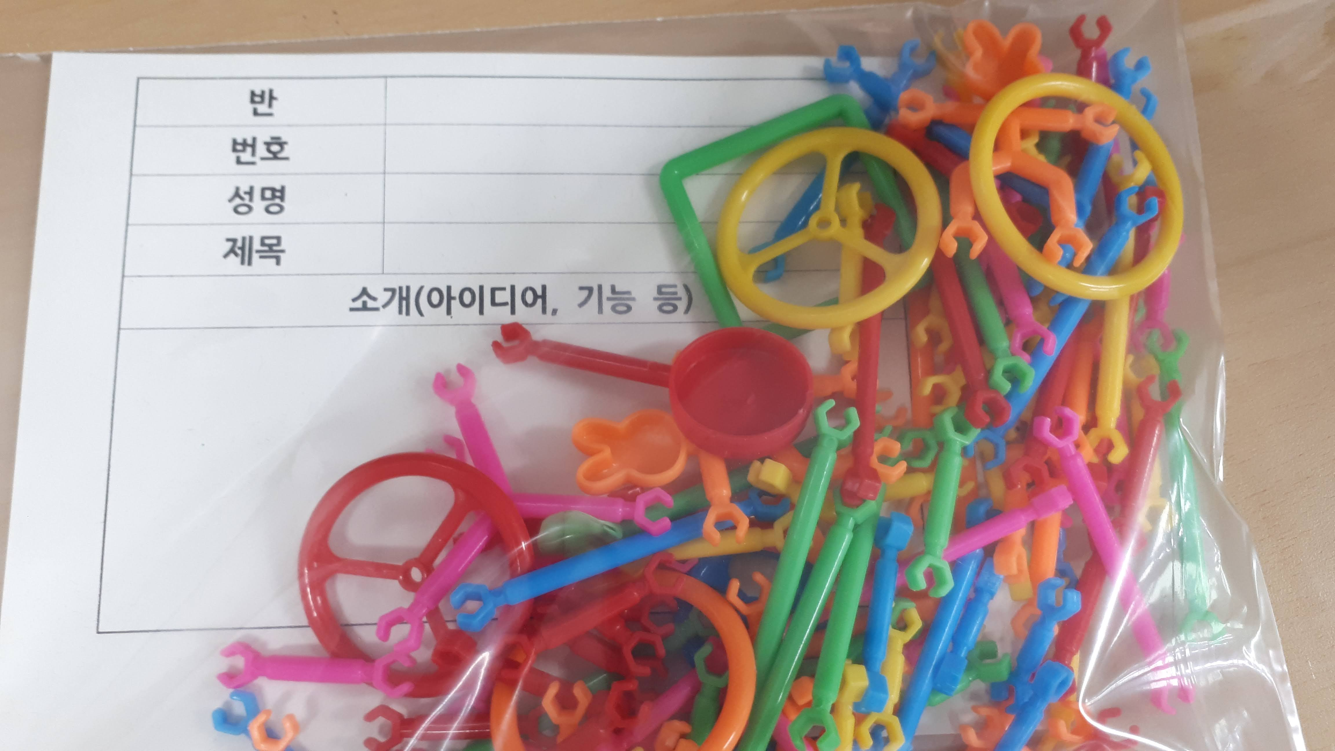 (5) 자신의 결과물과 기록 종이를 다시 비닐 봉투에 넣어 제출합니다. 이때 작품이 파손되지 않도록 주의하세요. 어느 정도의 변형은 문제 없습니다.