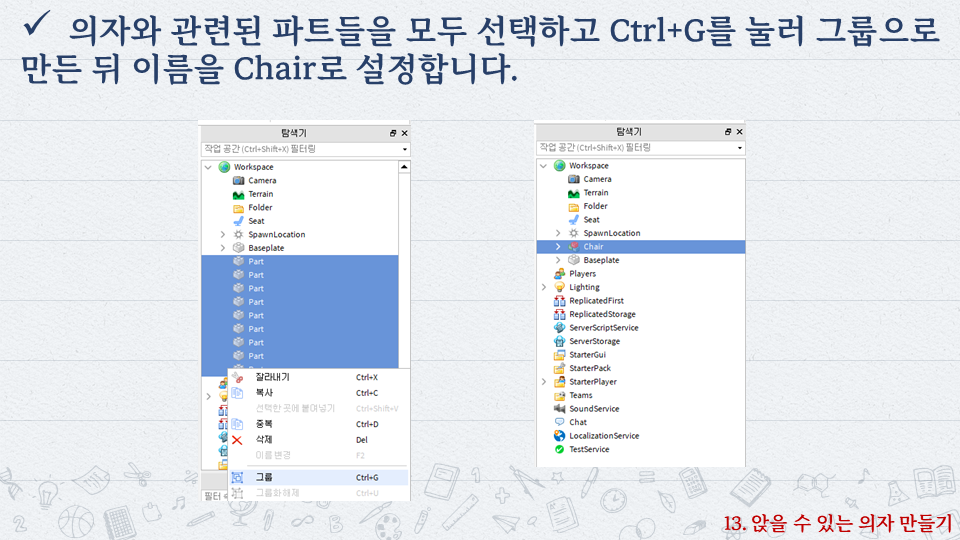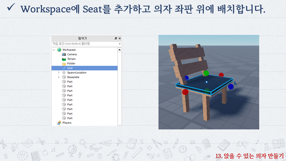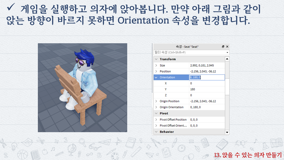 | 로블록스로 배우는 코딩 #12 - 게시판 세우기 (0) | 2022.10.06 |