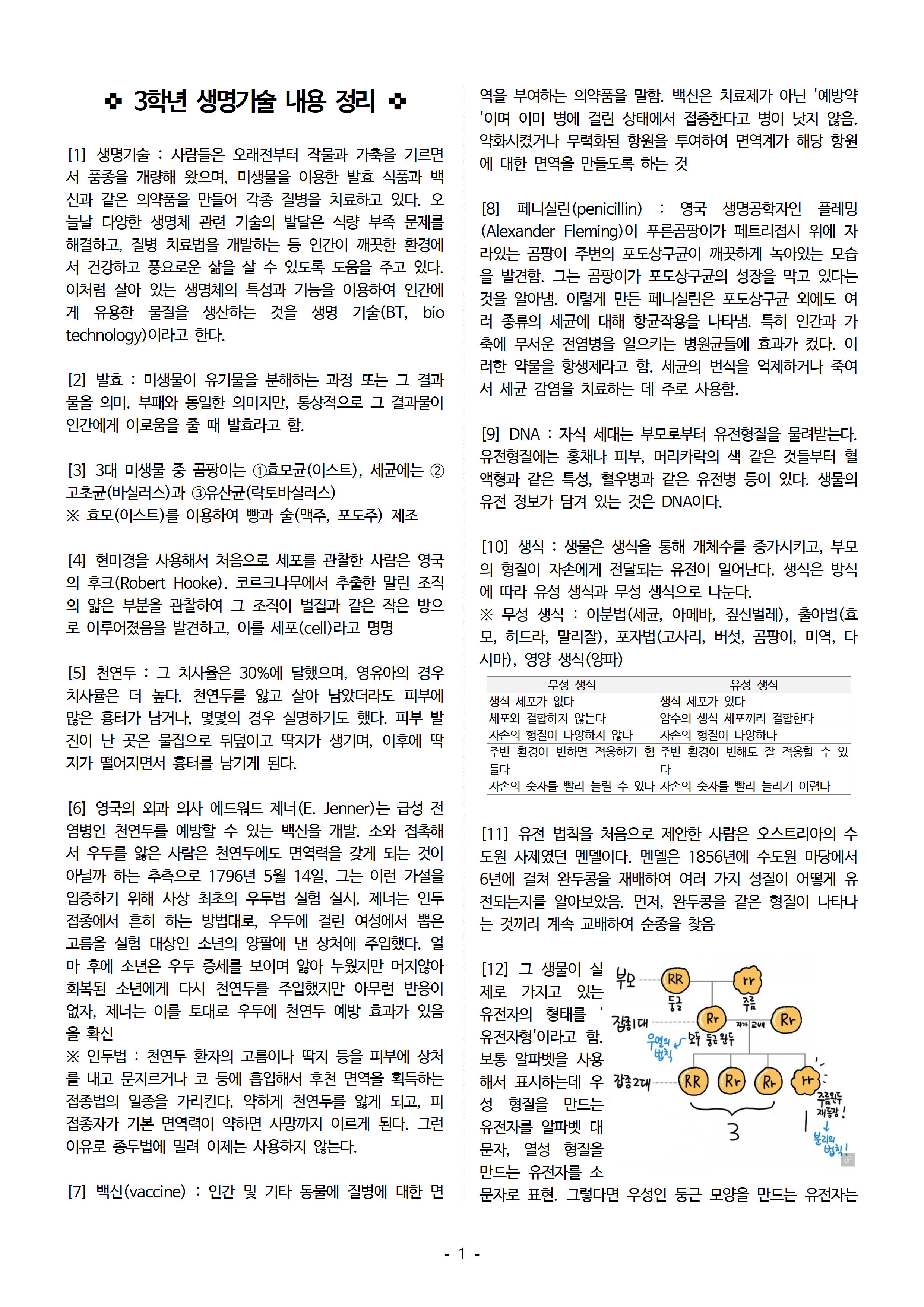 중학교 생명기술 요점정리