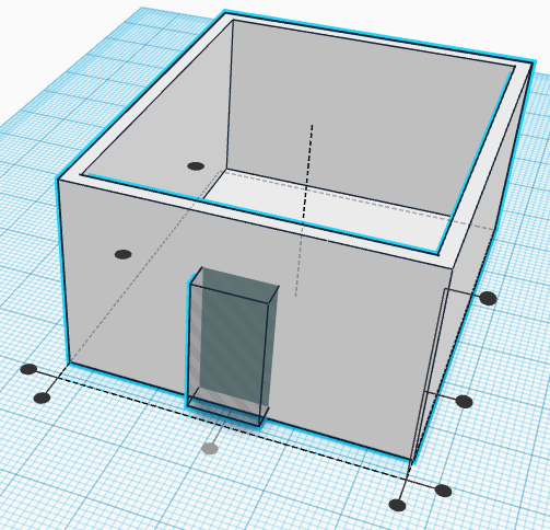 10. 출입구를 뚫기 위해 구멍 사각형을 가져와서 10*10*20으로 변경합니다.