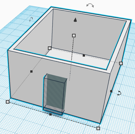 10. 출입구를 뚫기 위해 구멍 사각형을 가져와서 10*10*20으로 변경합니다.