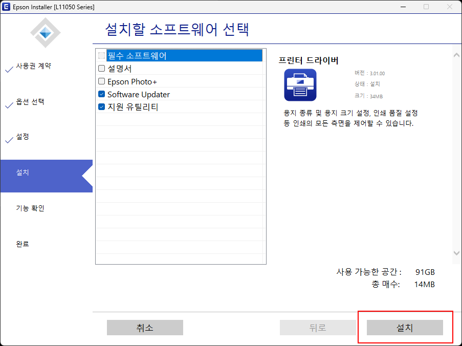 [4] 소프트웨어를 선택하고 <설치>를 실행합니다.