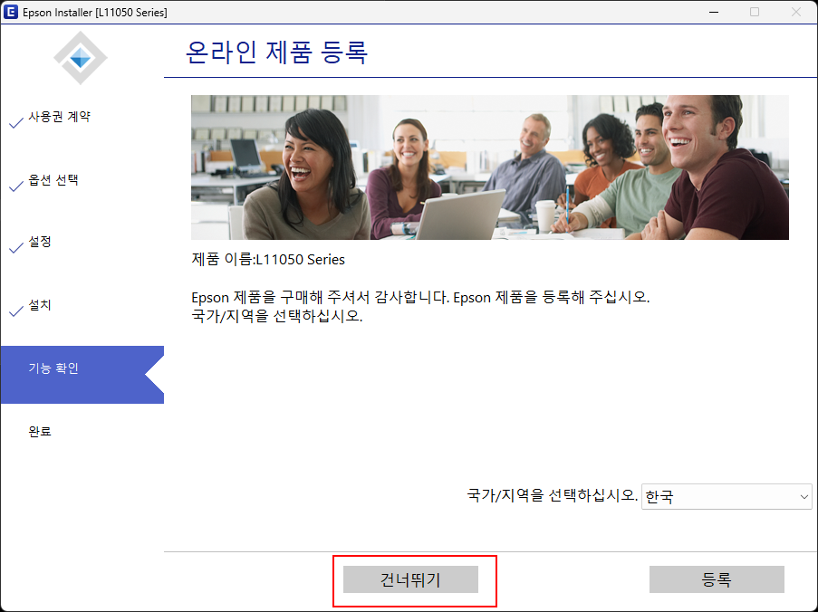 [6] 온라인 제품 등록은 <건너뛰기>합니다.