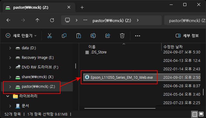 [1] L11050 드라이버를 다운로드한 뒤 실행합니다.