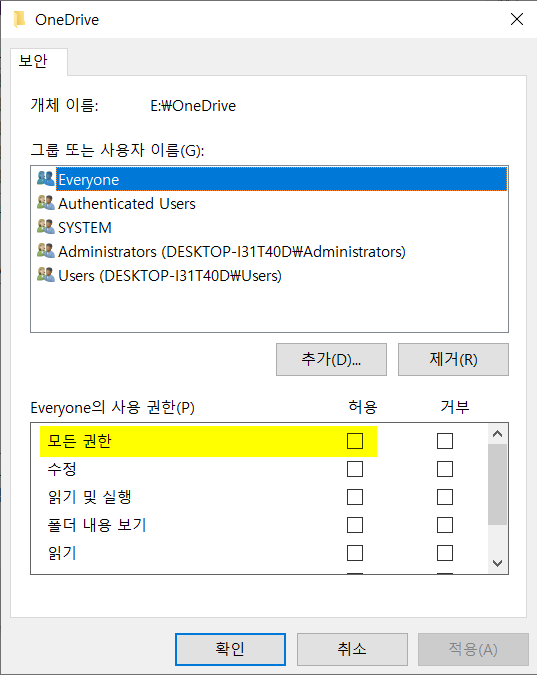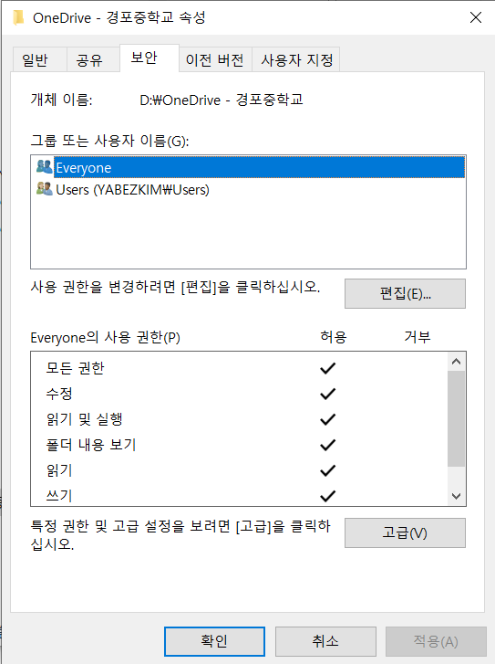 [3] <보안> 탭에서 Everyone을 선택하고 <편집>을 실행합니다.