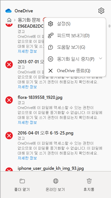 OneDrive에 이 파일에 액세스할 수 있는 권한이 없으므로 이 파일을 동기화할 수 없습니다.