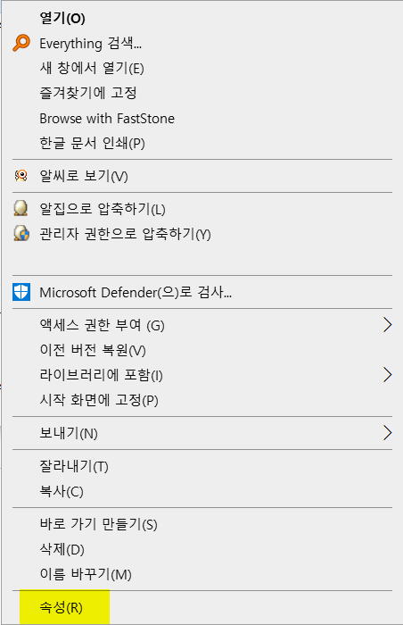 [2] 동기화 폴더를 마우스 오른쪽 버튼으로 눌러 <속성>을 실행합니다.