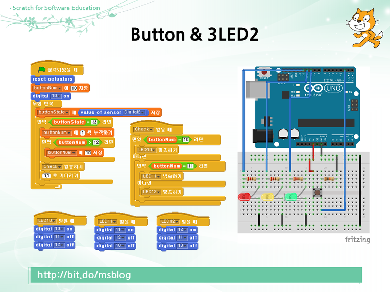프로그래밍/S4A S4A #12 Button & 3LED2 강릉바다의 블로그 2022. 11. 4. 17:41 Button&3LED2.sb 0.12MB 강릉바다의 블로그 Since 2008. 1. https://gnbada.kr/ 저작자표시 비영리 동일조건 (새창열림)
